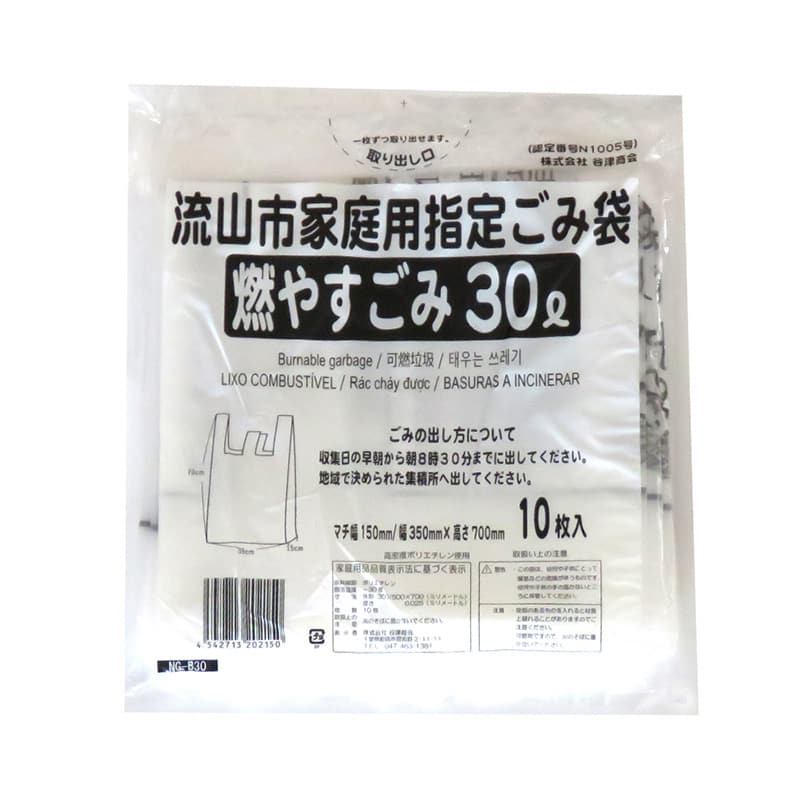 谷津商会 流山市家庭用指定ごみ袋 燃やすごみ用 レジ袋タイプ 30L 10枚入 NG-B30 1束(ご注文単位50束)【直送品】