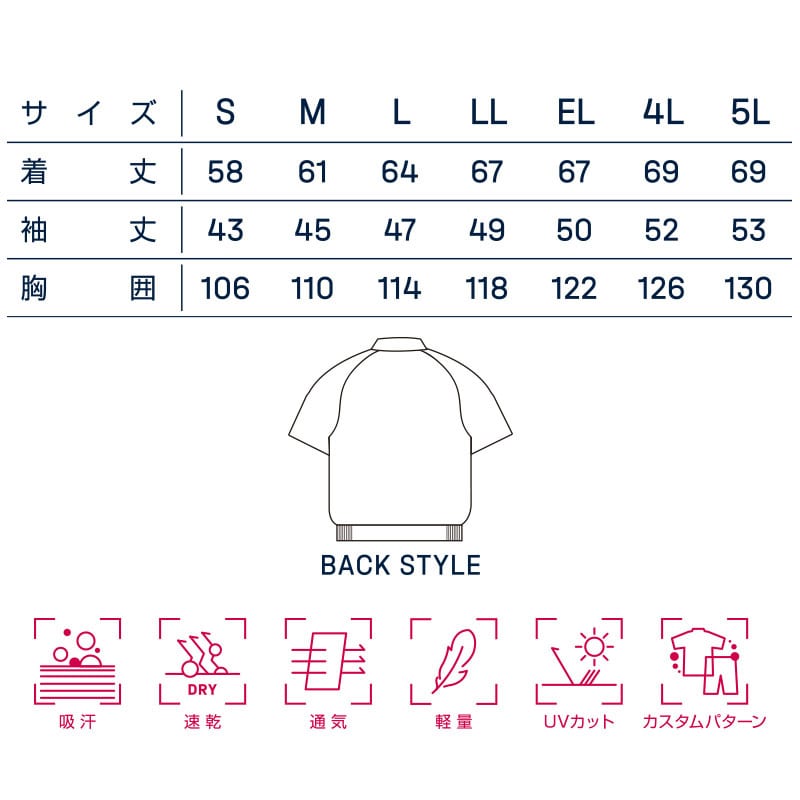 カンサイユニフォーム 半袖ブルゾン ネイビー LL 30201 1枚(ご注文単位1枚)【直送品】