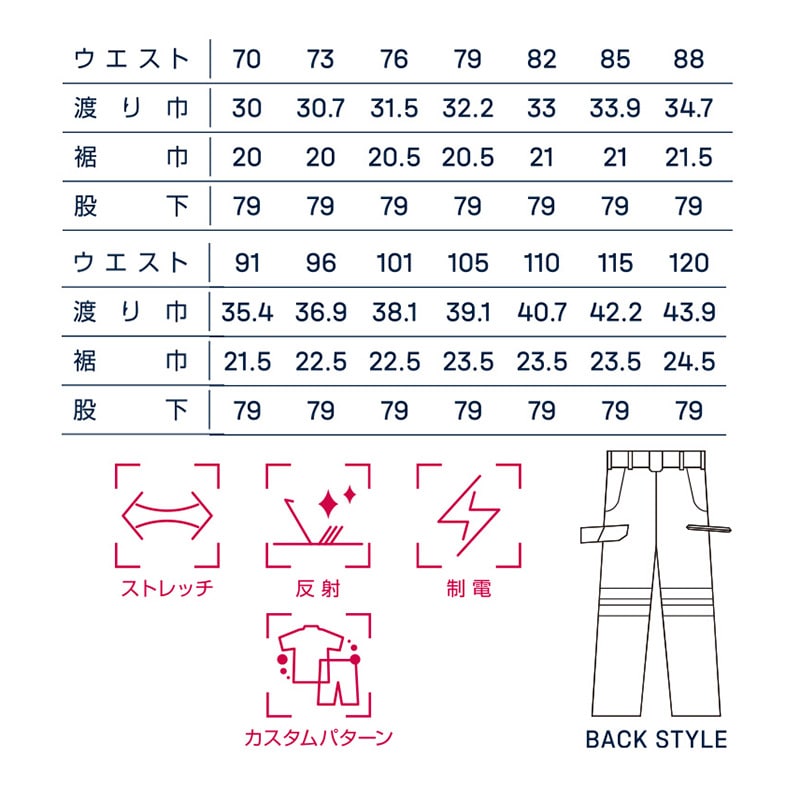 ウエスト:105cm/渡り幅:39.1cm/裾幅:23.5cm/股下:79cm