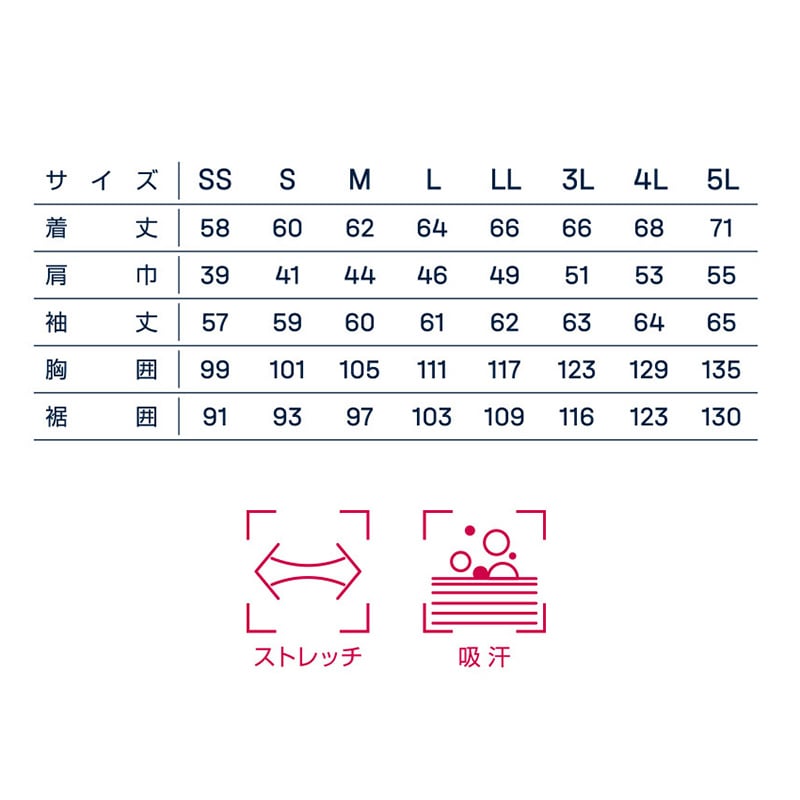着丈:62cm/肩幅:44cm/胸囲:105cm/袖丈:60cm