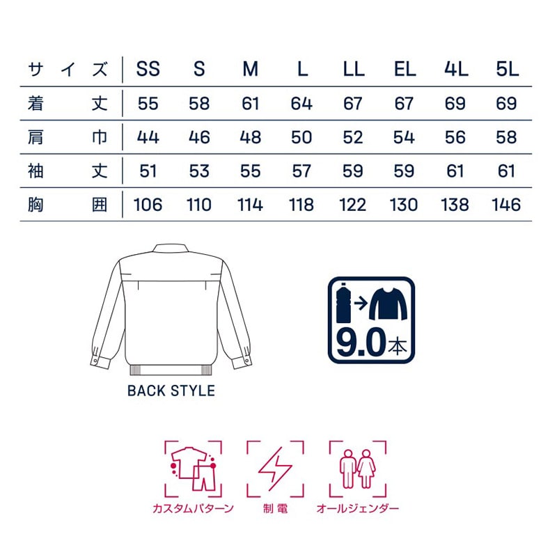 カンサイユニフォーム 長袖ブルゾン スミクロ M 20502 1枚(ご注文単位1枚)【直送品】