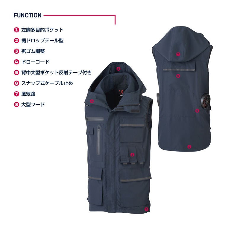カンサイユニフォーム×空調風神服 フードベスト ネイビー LL 01200 1枚(ご注文単位1枚)【直送品】