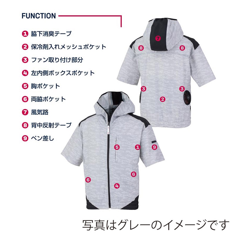 MHAK 空調風神服 フード付き半袖ブルゾン ブラック L 00200 1枚(ご注文単位1枚)【直送品】