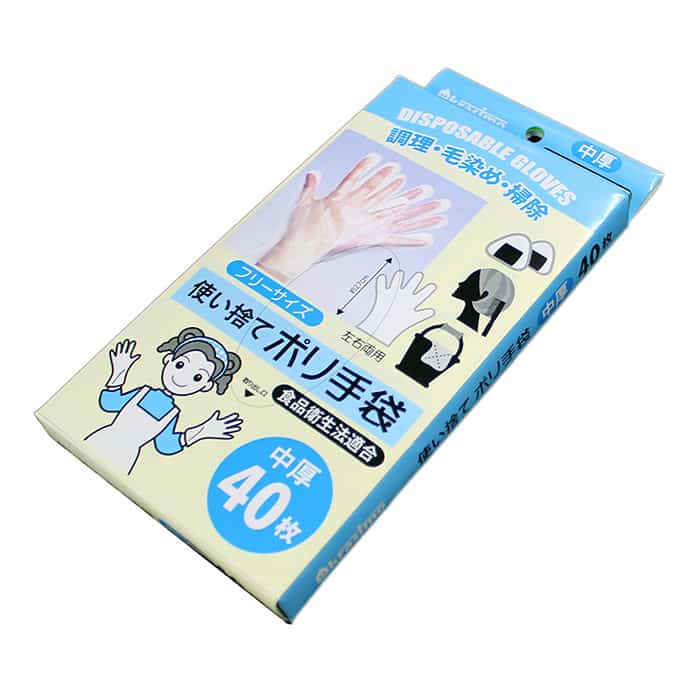 ジャパンプレミアム 使い捨てポリ手袋 箱入 中厚 40枚入 91409729 1袋(ご注文単位10袋)【直送品】