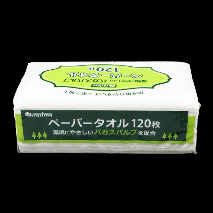 ジャパンプレミアム ペーパータオル バガスパルプ配合 120枚入 93320129 1袋(ご注文単位10袋)【直送品】