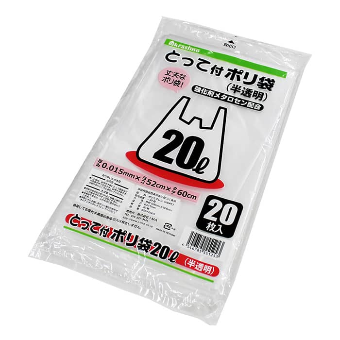 ジャパンプレミアム とって付ゴミ袋 20L 半透明 20枚 85512503 1袋(ご注文単位10袋)【直送品】
