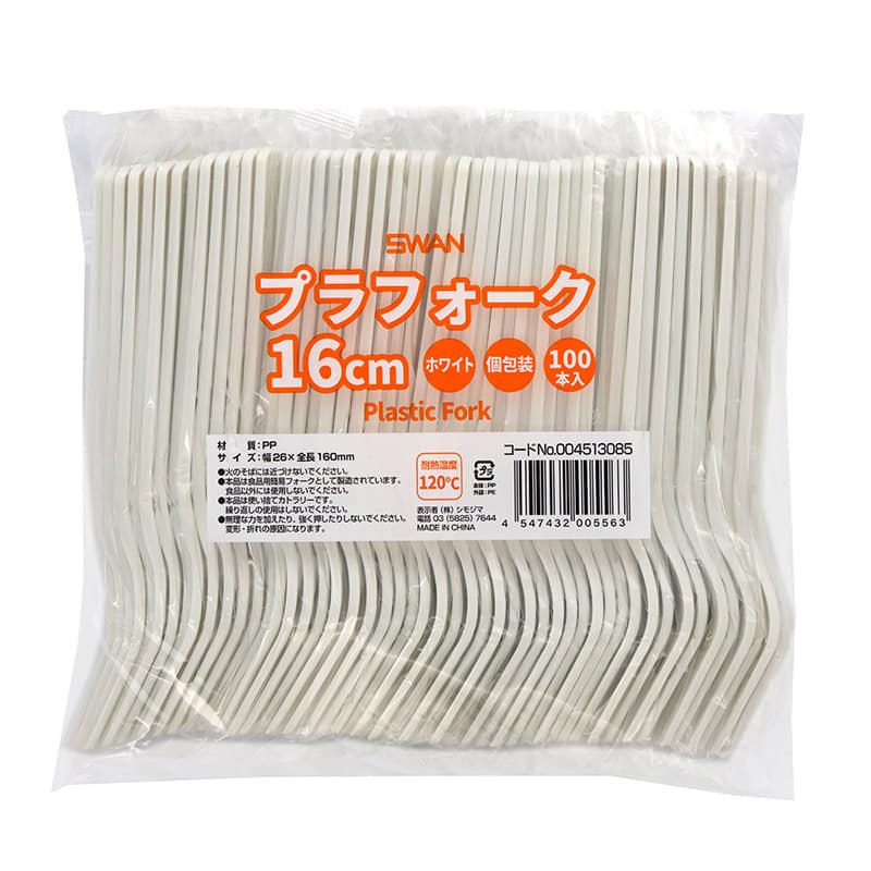 SWAN プラスチックフォーク 16cm 個包装 ホワイト 100本/袋