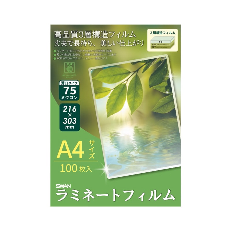 SWAN ラミネートフィルム 216×303 A4 100枚/箱