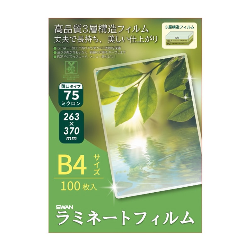 SWAN ラミネートフィルム 263×370 B4 100枚/箱