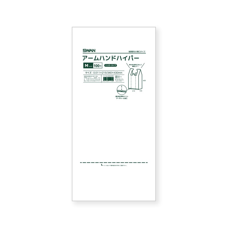 SWAN レジ袋 アームハンドハイパー M 100枚/袋
