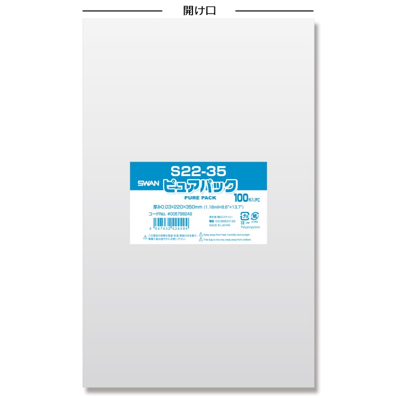 SWAN OPP袋 ピュアパック S22-35 (テープなし) 100枚/袋