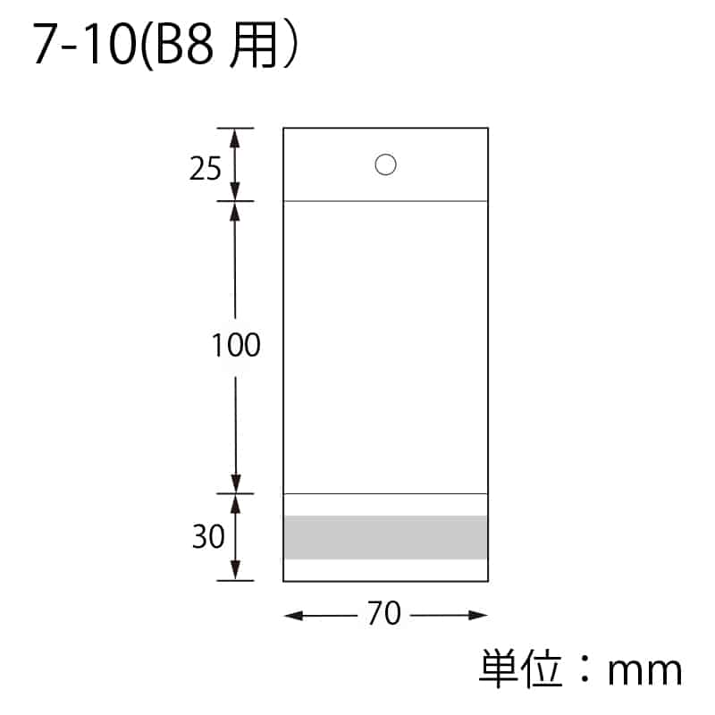 厚0.03×幅70×高100+ヘッダー25+テープ30mm/穴径:8mm
