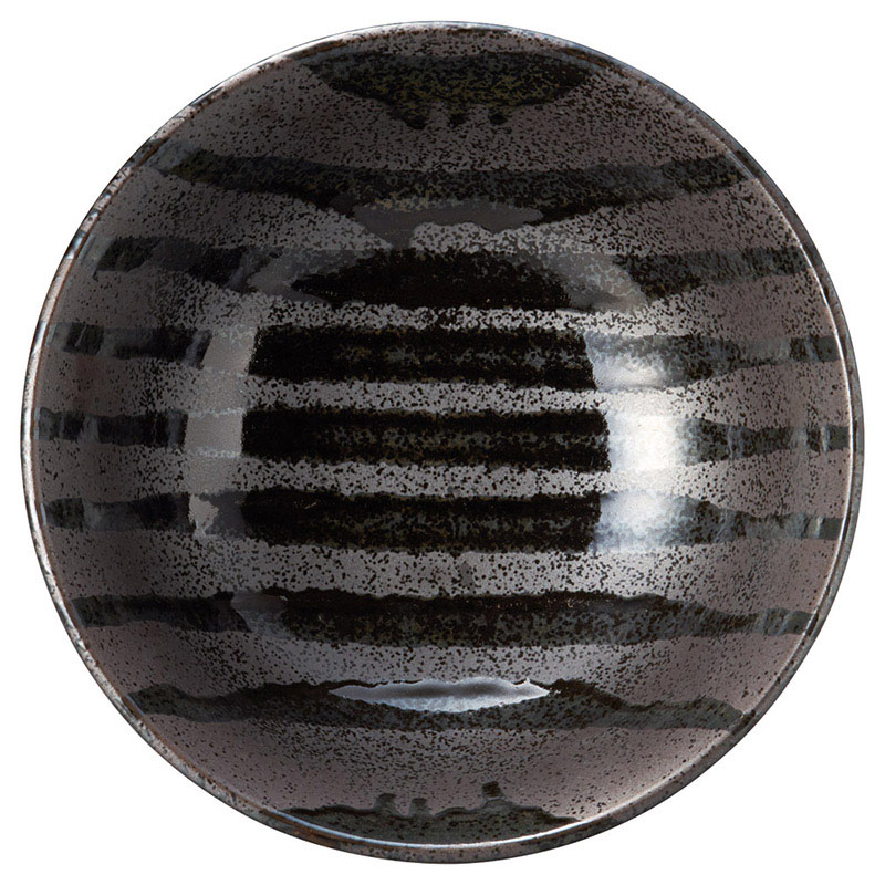 山万 71427-020 流彩黒ライン6.8高台丼 1個(ご注文単位1個)【直送品】