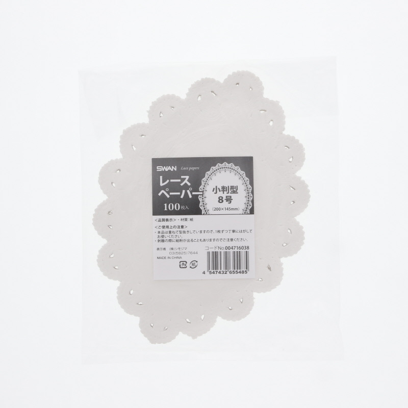 SWAN レースペーパー 小判型 8号 白 100枚/袋