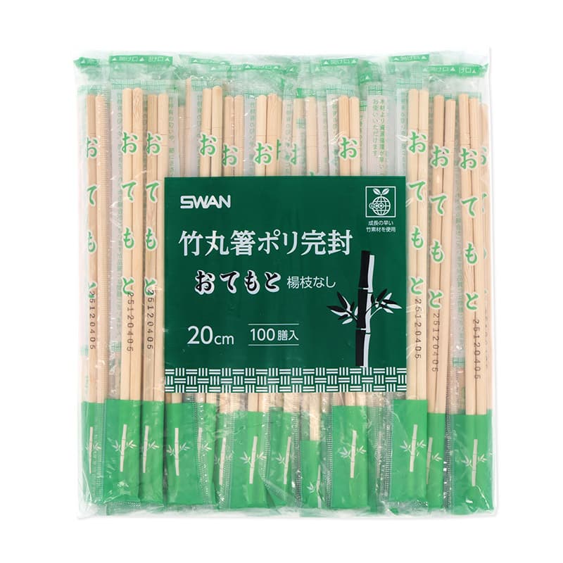 SWAN 割箸 竹丸箸 ポリ完封 楊枝なし 20cm 100膳/袋