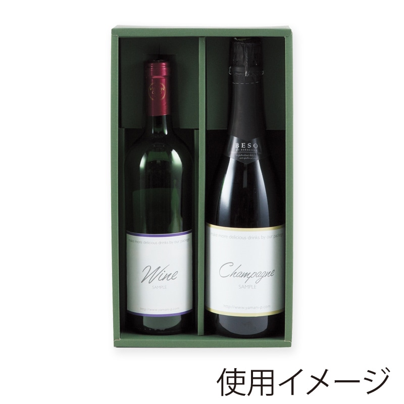 ヤマニパッケージ 片段ワイン箱 グリーン 2本 K-780 50枚/箱(ご注文単位1箱)【直送品】