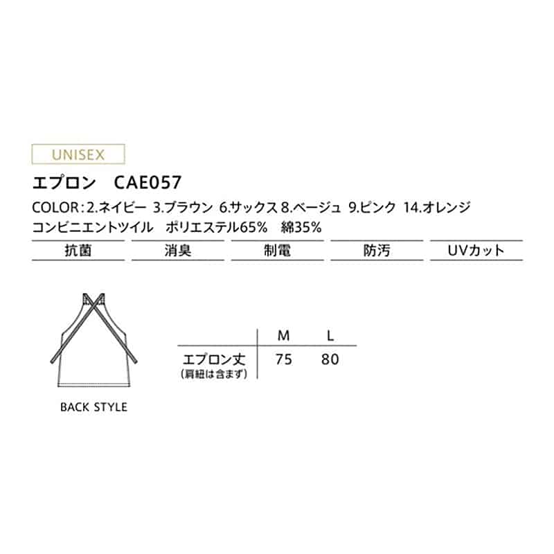 カーシーカシマ エプロン 男女共用 M ピンク CAE057 1枚(ご注文単位1枚)【直送品】