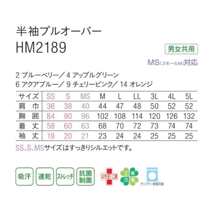 カーシーカシマ 半袖プルオーバー 男女共用 M ブルーベリー HM2189 1枚(ご注文単位1枚)【直送品】