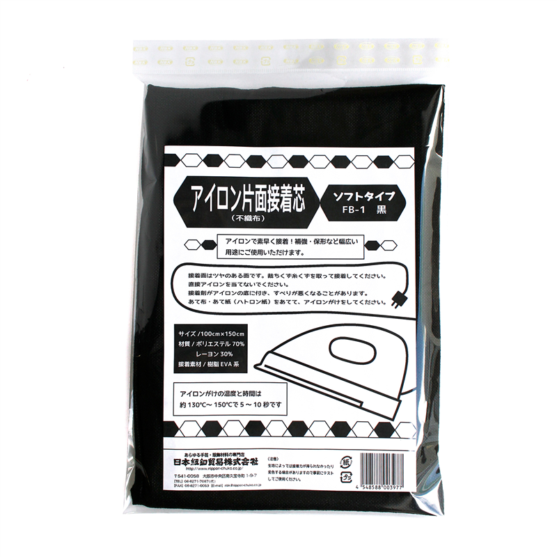 日本紐釦貿易 不織布片面接着芯 薄手 黒 100cm×1.5m 1枚 FB-1 (ご注文単位1枚)【直送品】