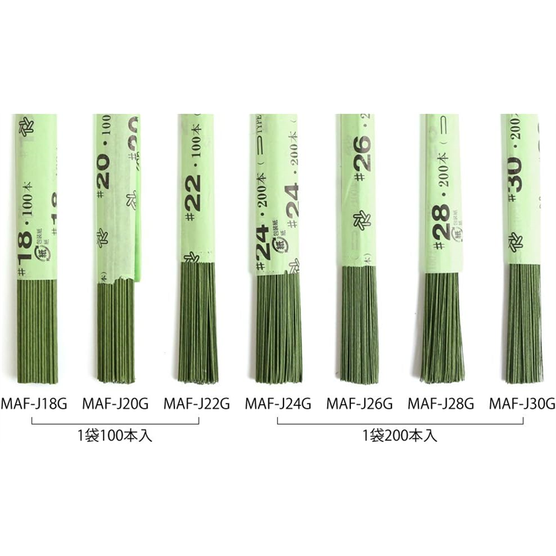 日本紐釦貿易 地巻ワイヤー #22 100本入り 全長36cm グリーン MAF-J22G (ご注文単位1束)【直送品】