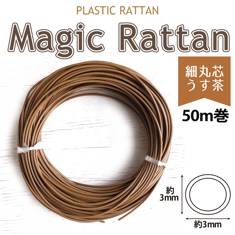 日本紐釦貿易 マジックラタン 細丸芯 幅約2.8mm 約50m巻 うす茶 MLC35-A26 (ご注文単位1巻)【直送品】