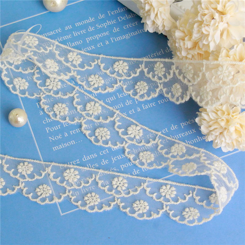 日本紐釦貿易 チュールレース 1ヤード(約0.9m) 5袋セット ホワイト×オフホワイト TT-LACE2 (ご注文単位1束)【直送品】