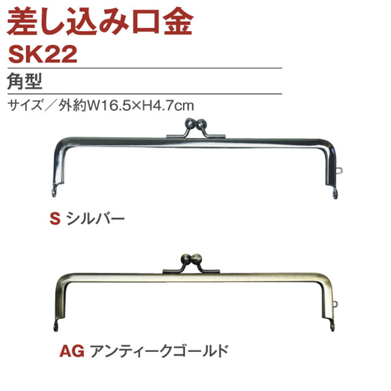 日本紐釦貿易 差し込みタイプ口金 外約W16.5×H4.7cm SK22-AG (ご注文単位1個)【直送品】