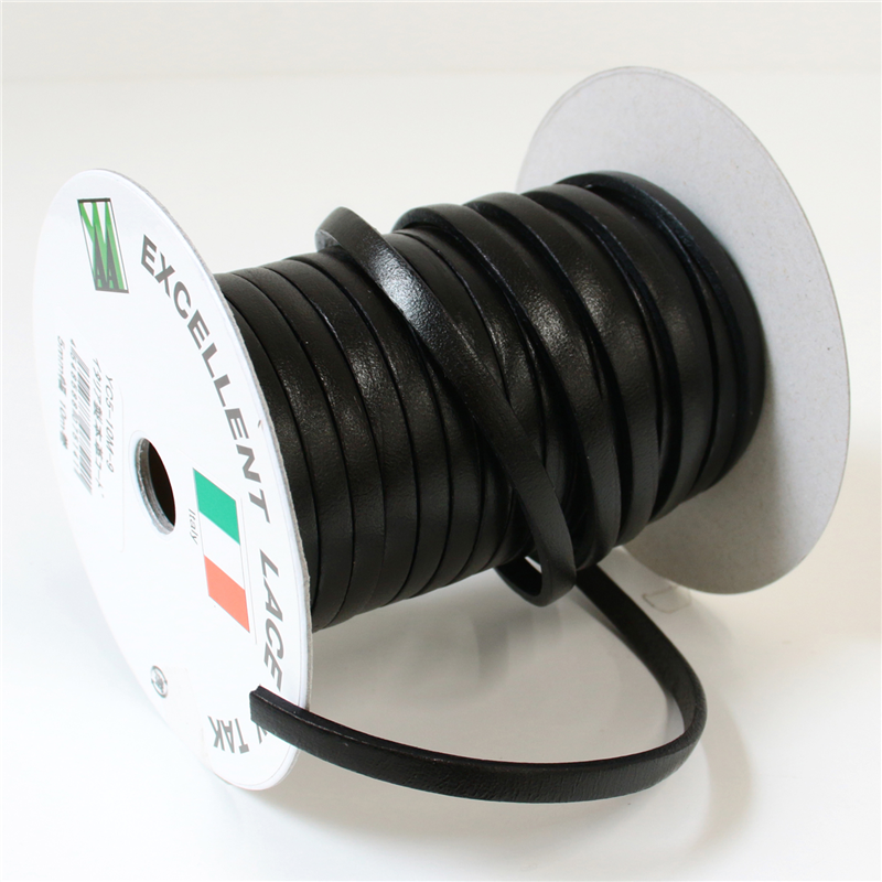 日本紐釦貿易 イタリア製本革コード 5mm幅 10m巻 黒 YC5-10M-9 (ご注文単位1巻)【直送品】