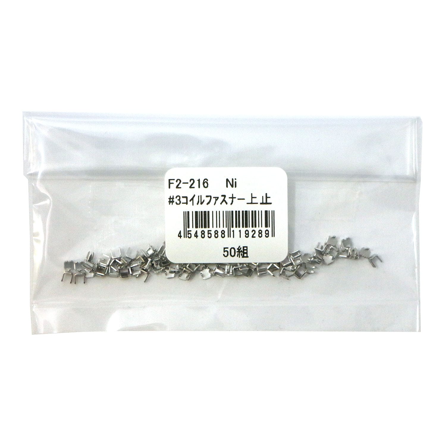 日本紐釦貿易 Y.K.K ファスナー用止め金具 上止めパーツ 50組入 コイル・ビスロン ニッケル 3号対応 F2-216 (ご注文単位1束)【直送品】