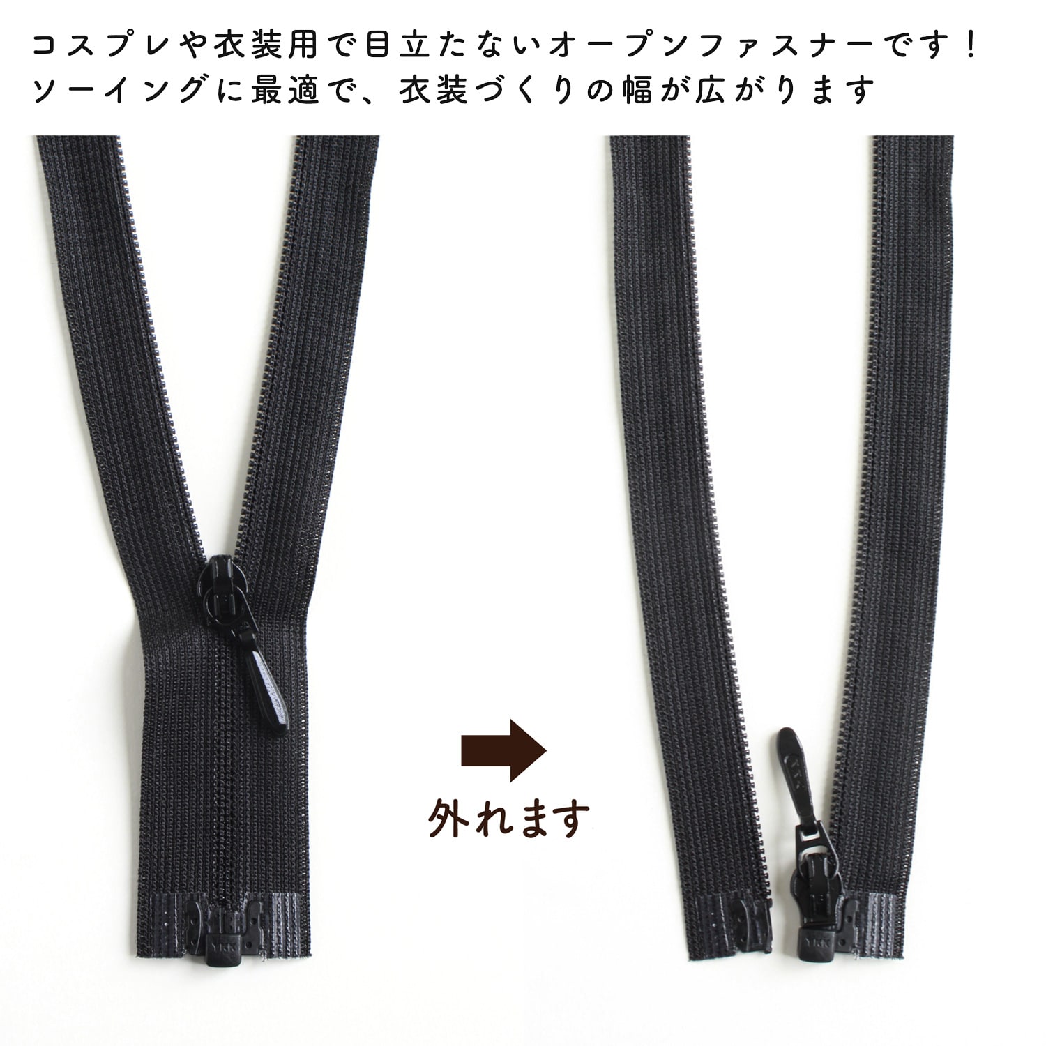 日本紐釦貿易 Y.K.K 裏使い コイルオープンファスナー 56cm 同色3本入 col.580 ブラック 3COR56-580 (ご注文単位1束)【直送品】