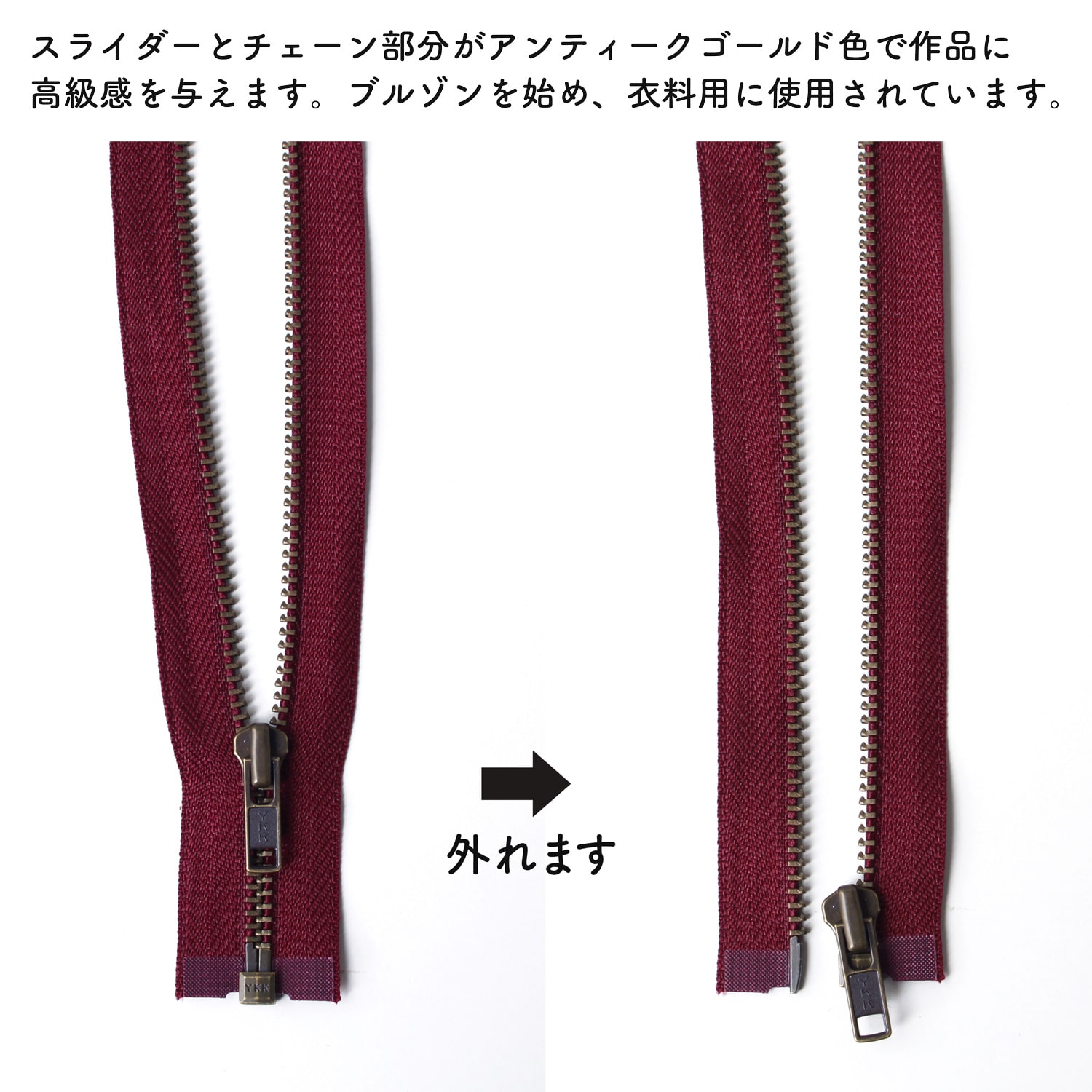 日本紐釦貿易 Y.K.K オープンファスナー 60cm 同色3本入 col.527 エンジ 4GKB60-527 (ご注文単位1束)【直送品】
