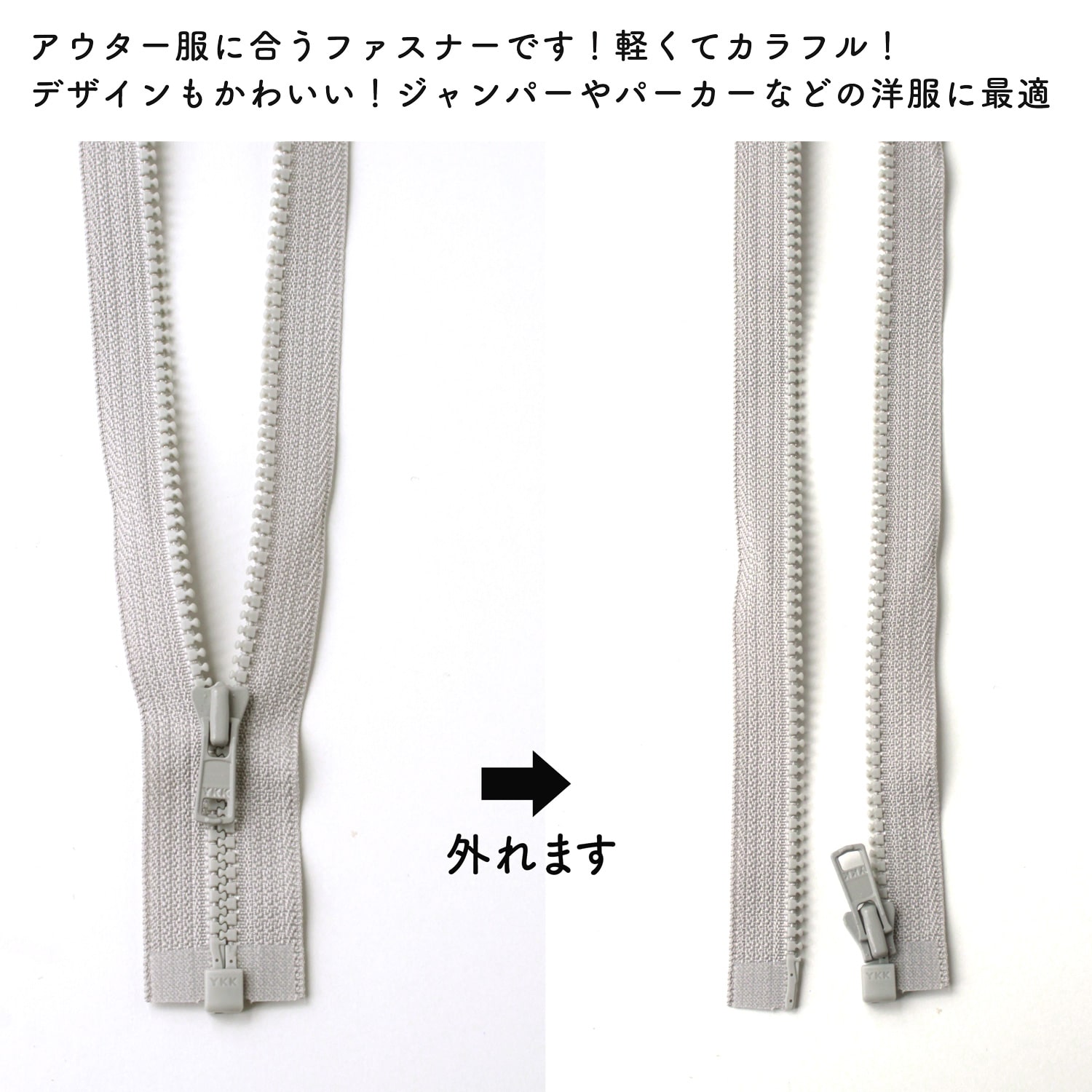 日本紐釦貿易 Y.K.K ビスロンオープンファスナー 50cm 同色3本入 col.576 グレー 3VS50-576 (ご注文単位1束)【直送品】