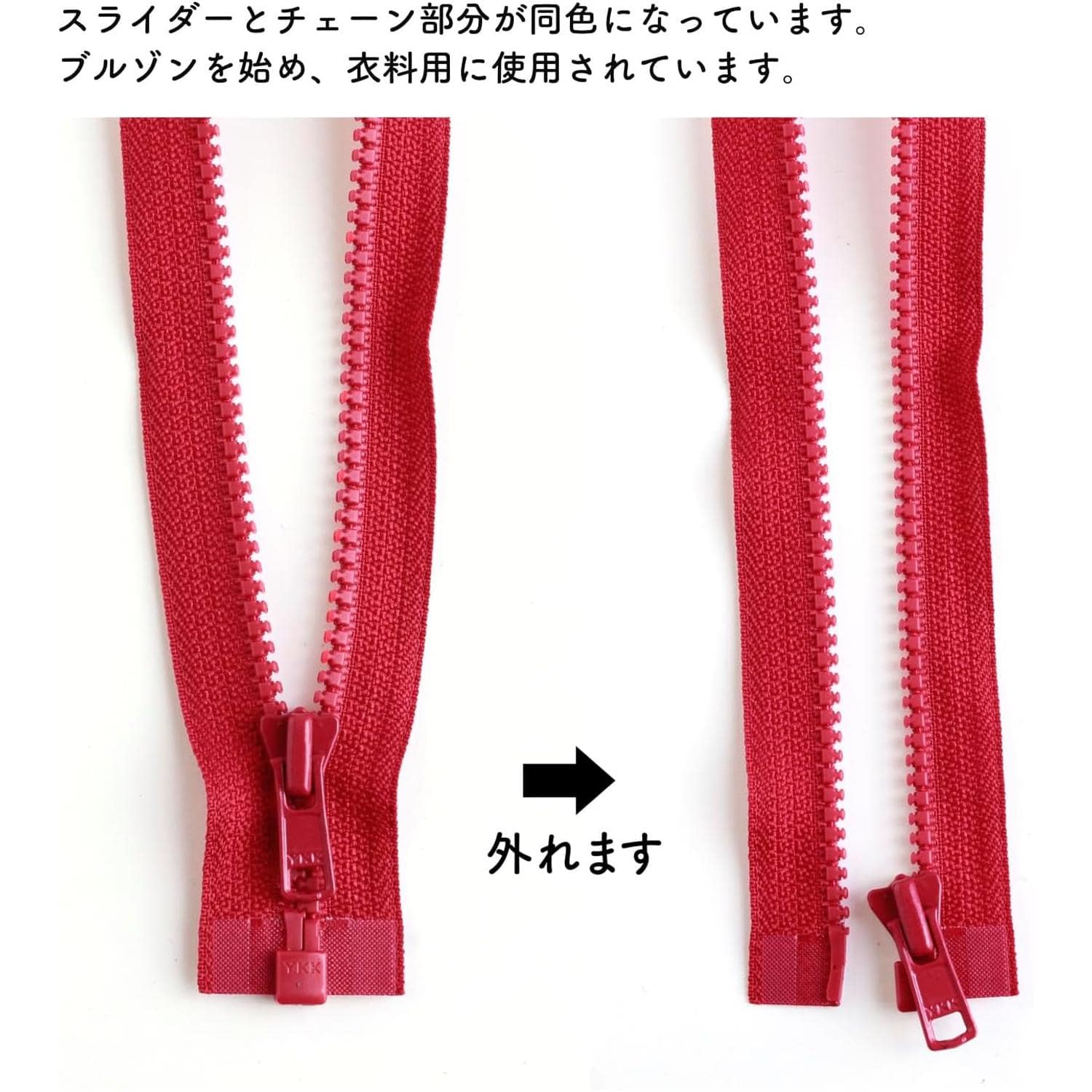 日本紐釦貿易 Y.K.K ビスロンオープンファスナー 60cm 同色3本入 col.519 赤 4VS60-519 (ご注文単位1束)【直送品】