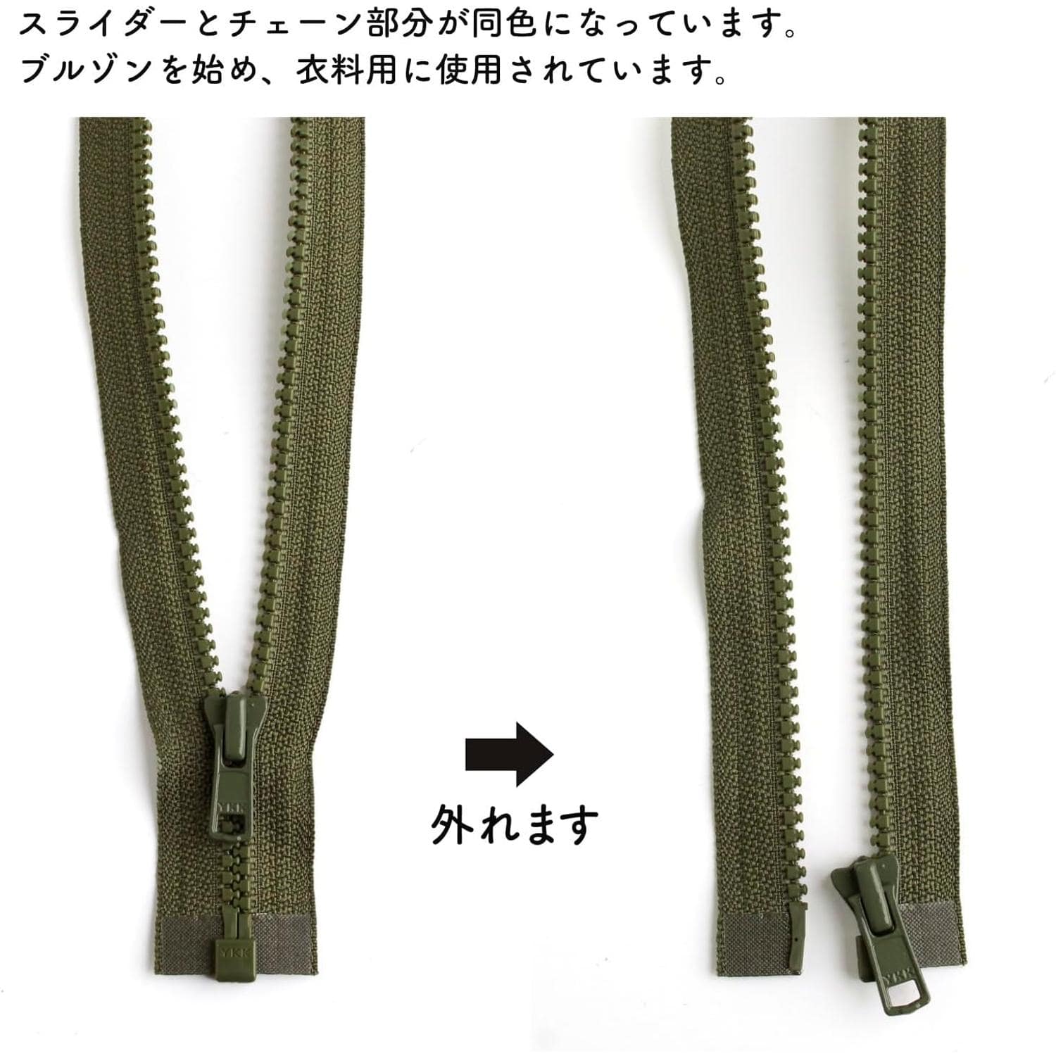 日本紐釦貿易 Y.K.K ビスロンオープンファスナー 60cm 同色3本入 col.566 モスグリーン 4VS60-566 (ご注文単位1束)【直送品】