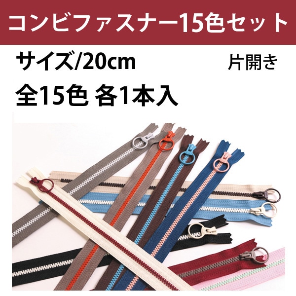 日本紐釦貿易 Y.K.K コンビファスナー 20cm 15色セット 3VSC20-15MIX (ご注文単位1セット)【直送品】