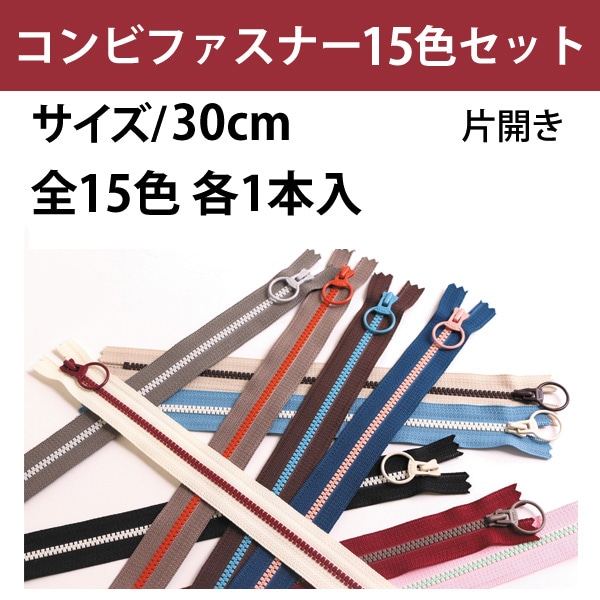日本紐釦貿易 Y.K.K コンビファスナー 30cm 15色セット 3VSC30-15MIX (ご注文単位1セット)【直送品】