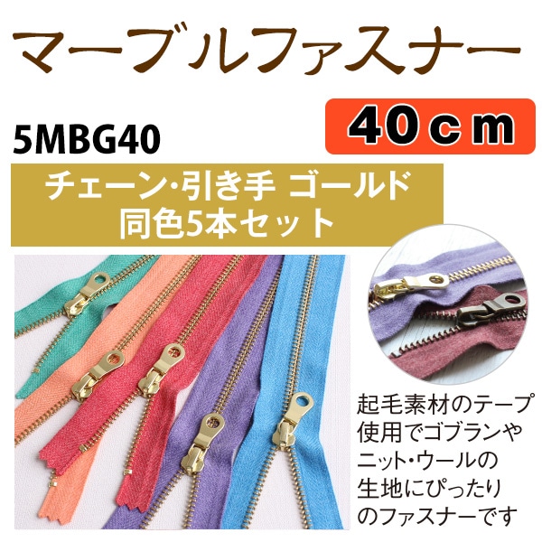 日本紐釦貿易 Y.K.K マーブルファスナー 赤 40cm 5本入 5MBG40-519 (ご注文単位1束)【直送品】