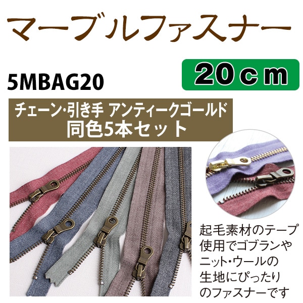 日本紐釦貿易 Y.K.K マーブルファスナー ブラウン 20cm 5本入 5MBAG20-570 (ご注文単位1束)【直送品】