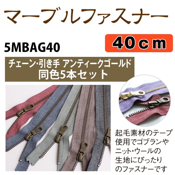 日本紐釦貿易 Y.K.K マーブルファスナー エンジ 40cm 5本入 5MBAG40-527 (ご注文単位1束)【直送品】