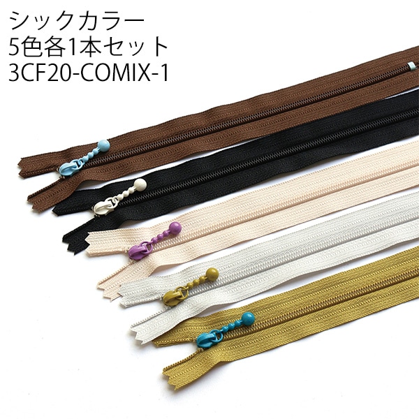日本紐釦貿易 Y.K.K ポーチ用ファスナー シックカラー 20cm 5色セット 3CF20-COMIX-1 (ご注文単位1束)【直送品】