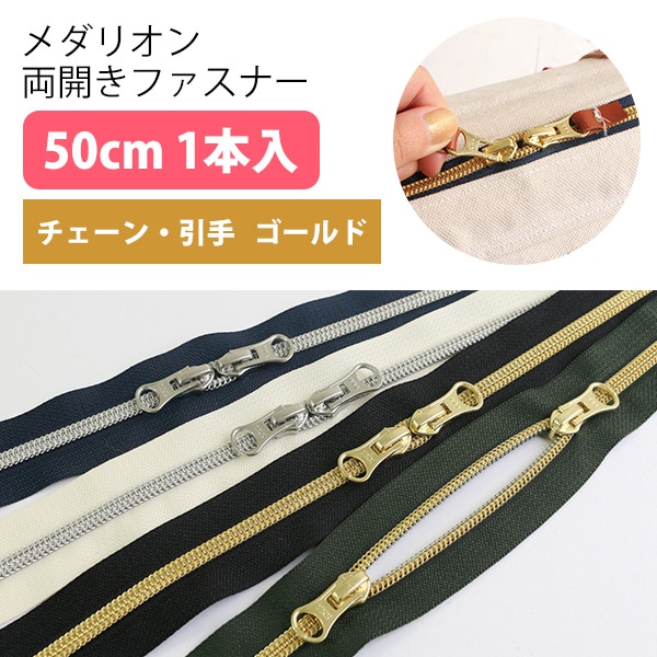 日本紐釦貿易 Y.K.K メタリオン両開きファスナー 生成×ゴールド 50cm 1本 5CM50-3G (ご注文単位1束)【直送品】