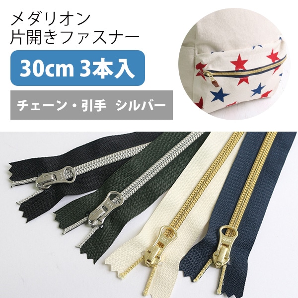日本紐釦貿易 Y.K.K メタリオン片開きファスナー グリーン×シルバー 30cm 3本 5CM30-4S (ご注文単位1束)【直送品】