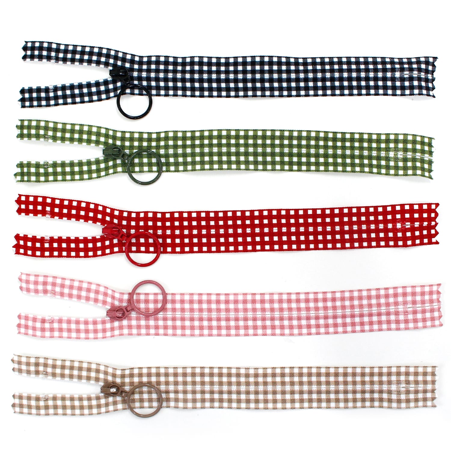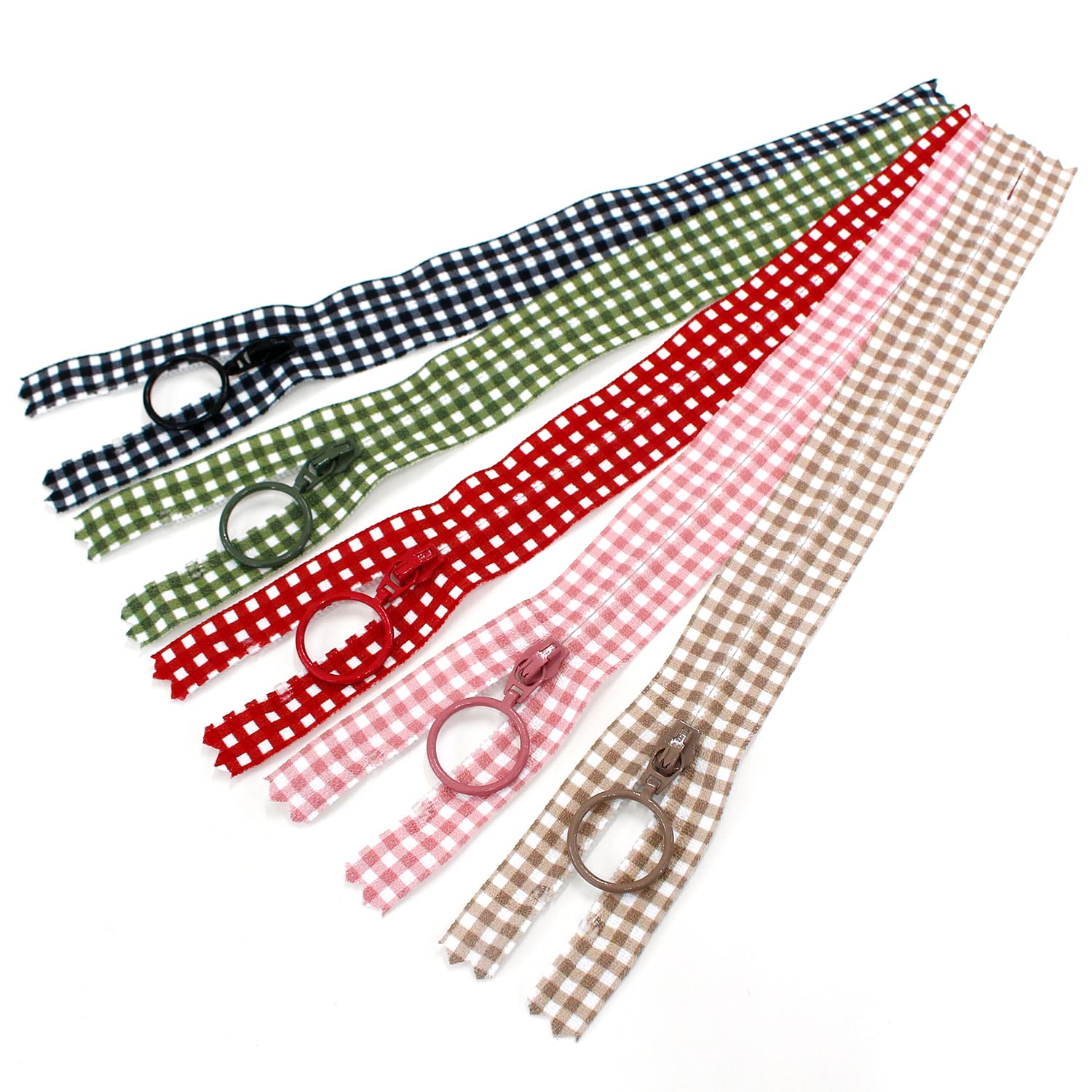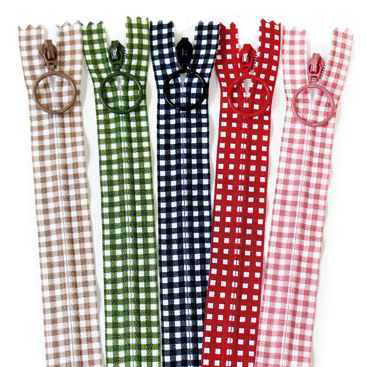 日本紐釦貿易 (Nippon Chuko) ギンガムチェック柄 プリントファスナー ナチュラルカラー 20cm 5色セット PRF20-CH5MIX-1 (ご注文単位1束)【直送品】