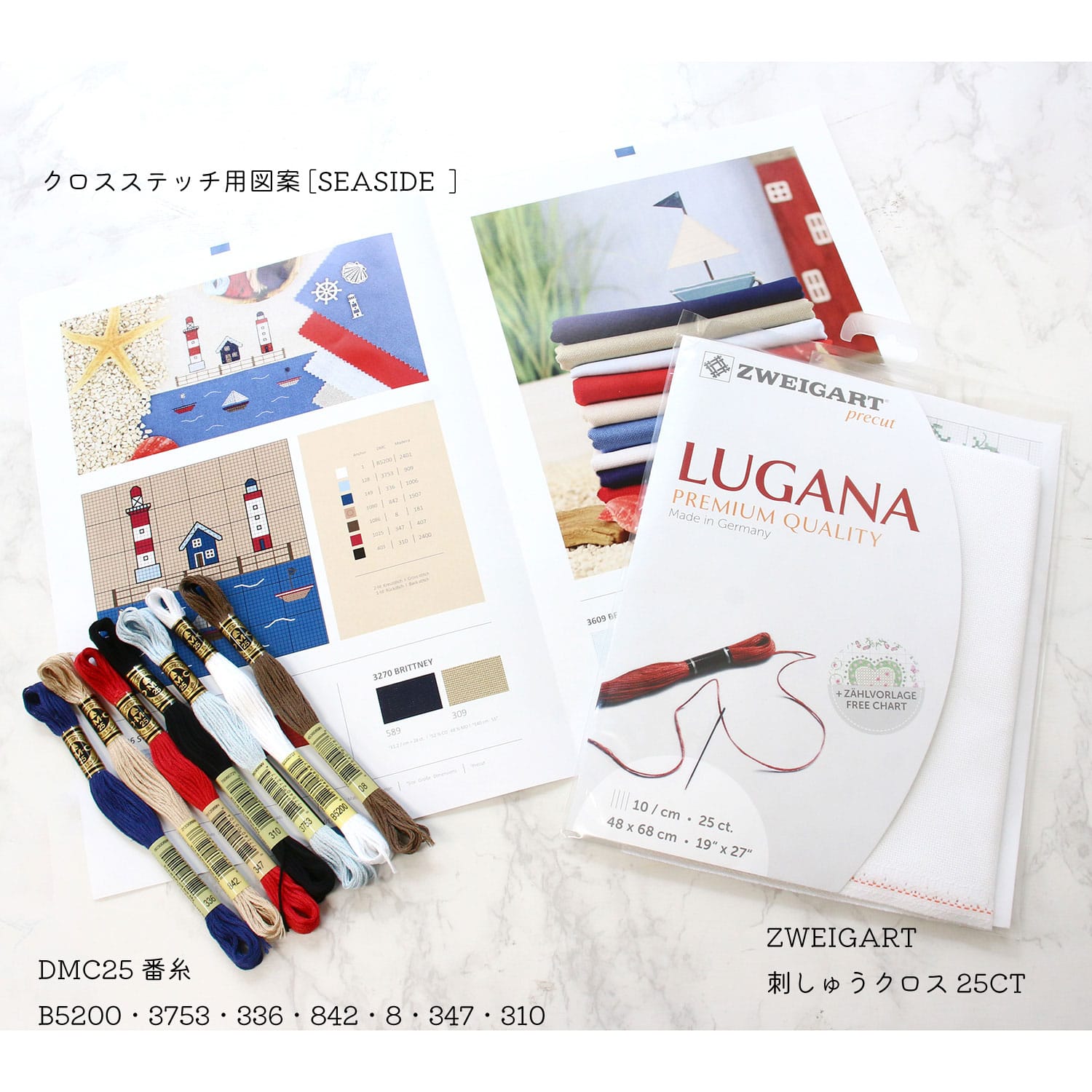 日本紐釦貿易 ツヴァイガルト(ZWEIGART) 刺しゅうクロスキット プリカット 25CT ZW3835P-100-SET (ご注文単位1セット)【直送品】