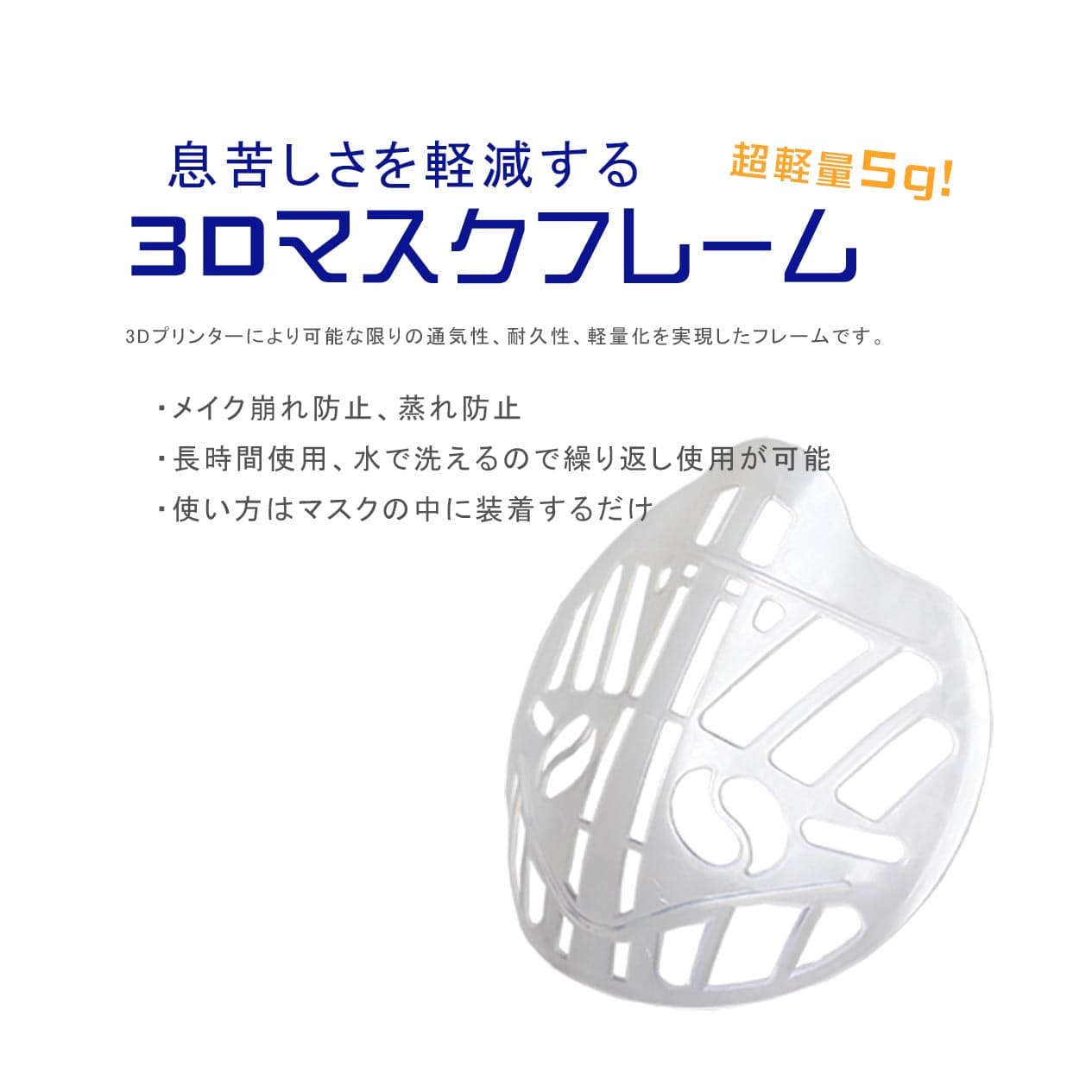 日本紐釦貿易 息苦しさを軽減する3Dマスクフレーム 超軽量5g メイク崩れ防止 蒸れ防止 SGM-MFM (ご注文単位1個)【直送品】