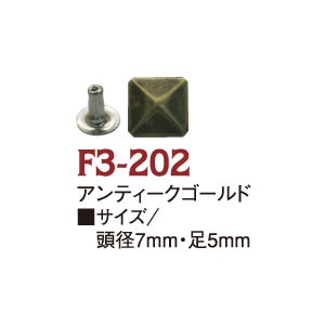 日本紐釦貿易 スタッズ角ピラミッド アンティークゴールド 7mm 20個入 F3-202 (ご注文単位1束)【直送品】