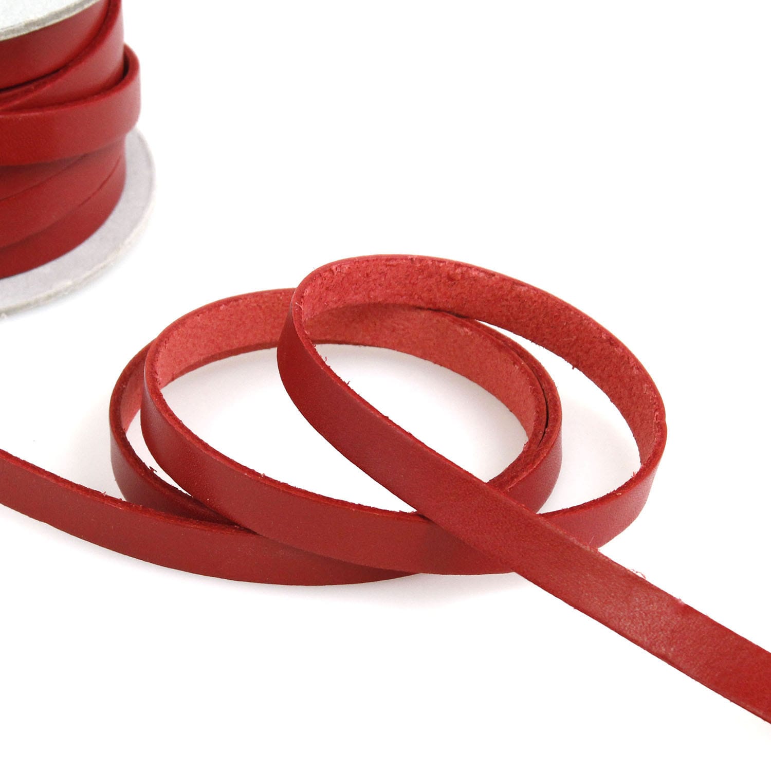 日本紐釦貿易 ヌメ革テープ 10mm 長さ10m巻 赤 MTLS1010-8 (ご注文単位1巻)【直送品】