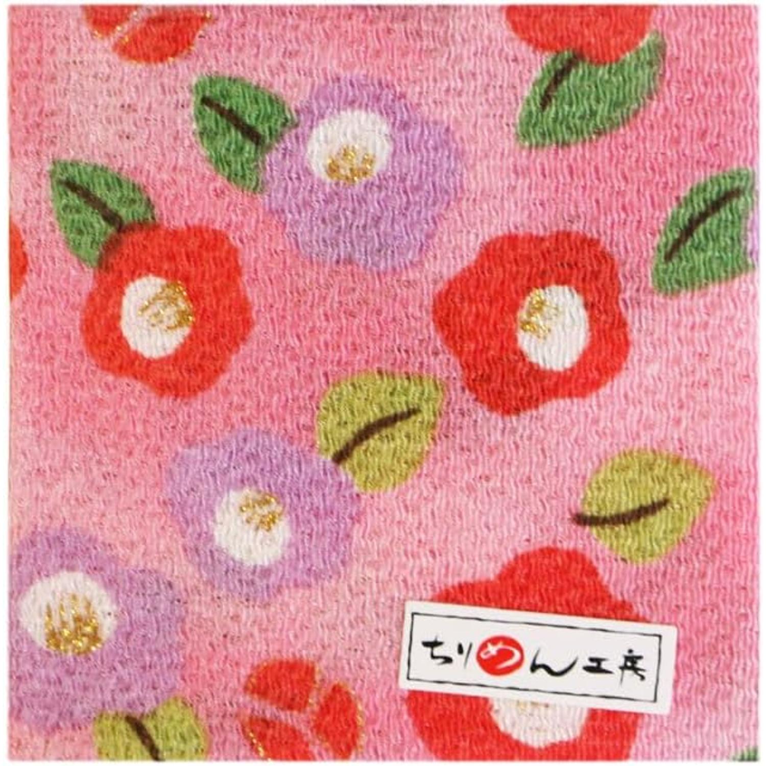 日本紐釦貿易 ちりめんカット 金彩 約23×33cm 椿柄 桃色 GH52-02 (ご注文単位1枚)【直送品】