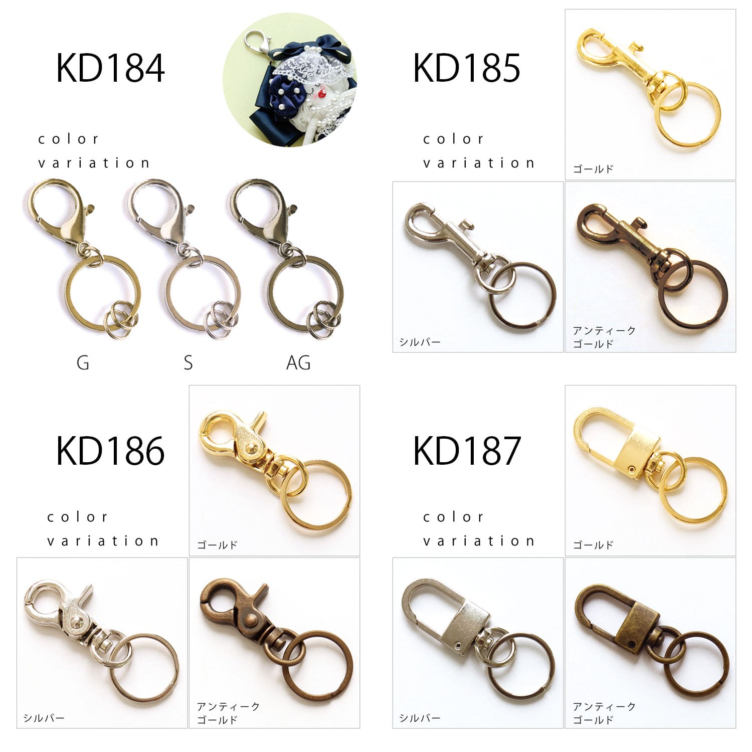 日本紐釦貿易 キーホルダー金具スネークタイプ 20個入り 全長6cm ゴールド KD7 (ご注文単位1束)【直送品】
