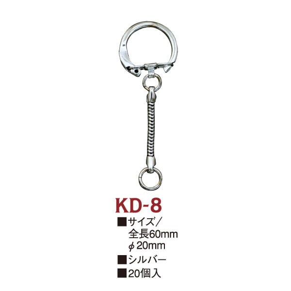 日本紐釦貿易 キーホルダー金具スネークタイプ 20個入り 全長6cm シルバー KD8 (ご注文単位1束)【直送品】